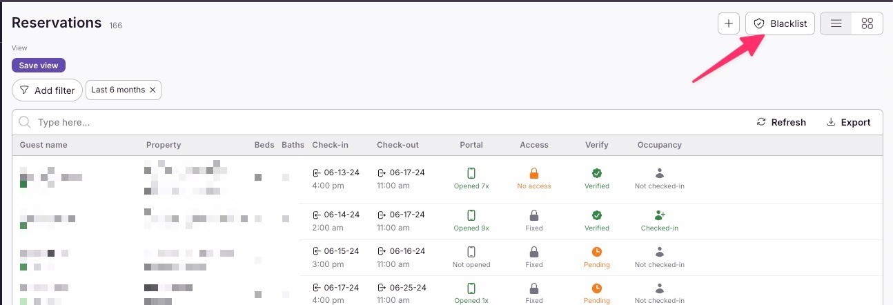 - Once clicked, you’ll see a list of all guests you’ve blacklisted, along with the reason why each guest was blacklisted.