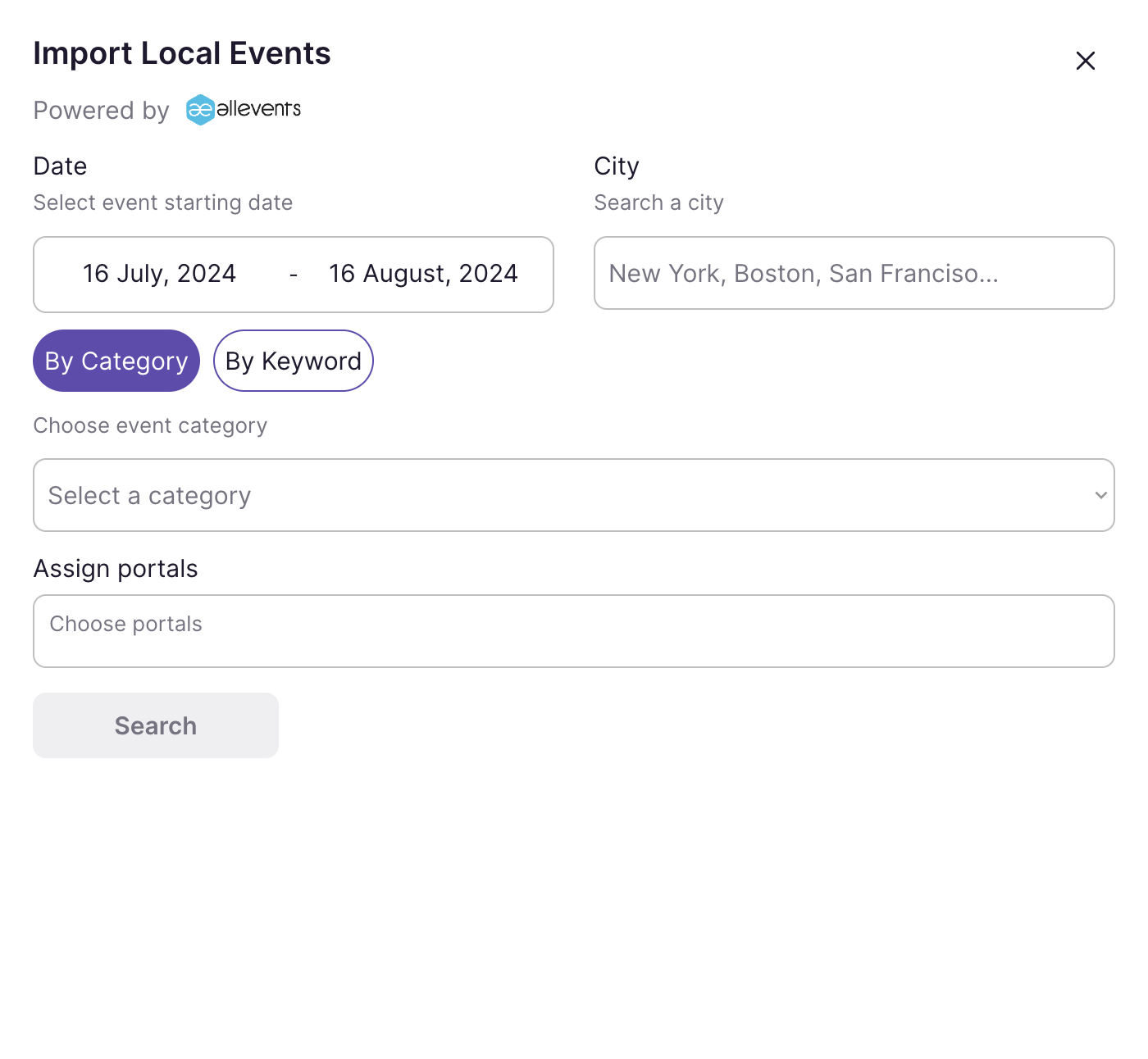You can filter by category or keyword to search for local events