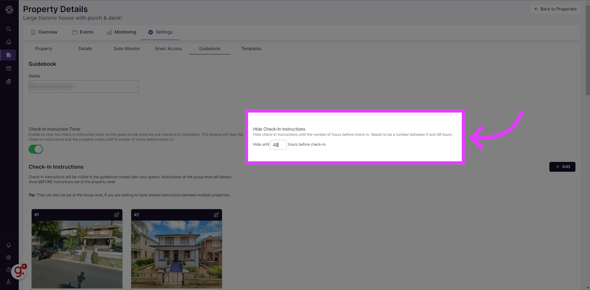 This guide covered the steps to enable the dynamic timer for check-in instructions in SuiteOp. Whether or not you use a smart lock, this feature is a fun way to create excitement about the stay with a timer leading up to the check-in date.