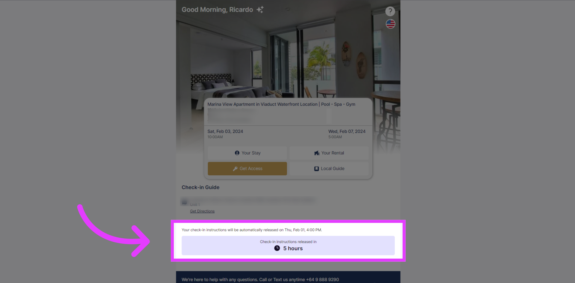 This ensures that guests can only view the access details within a specified time frame leading up to their scheduled check-in, offering you peace of mind that guests won’t be able to enter before the timer.
